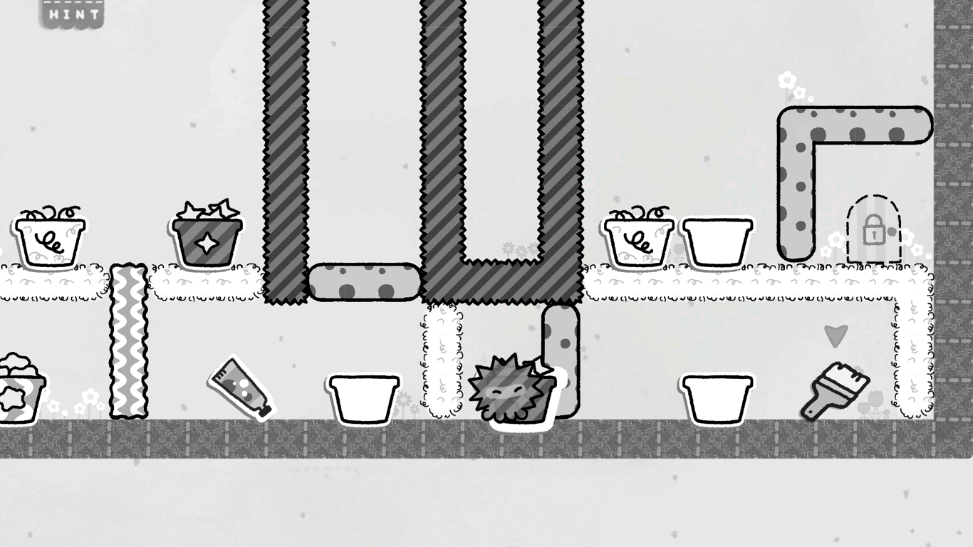 先のステージに進むにつれてさまざまなギミックが登場し、変化に富んだステージがプレイヤーを待ち受ける。重力が反転する矢印に触れると、ムーニーが逆さまになって天井に張り付く。他にも、ムーニーの色を変えられる雨雲や、穴から穴へのワープなど、さまざまなギミックがあるようだ。