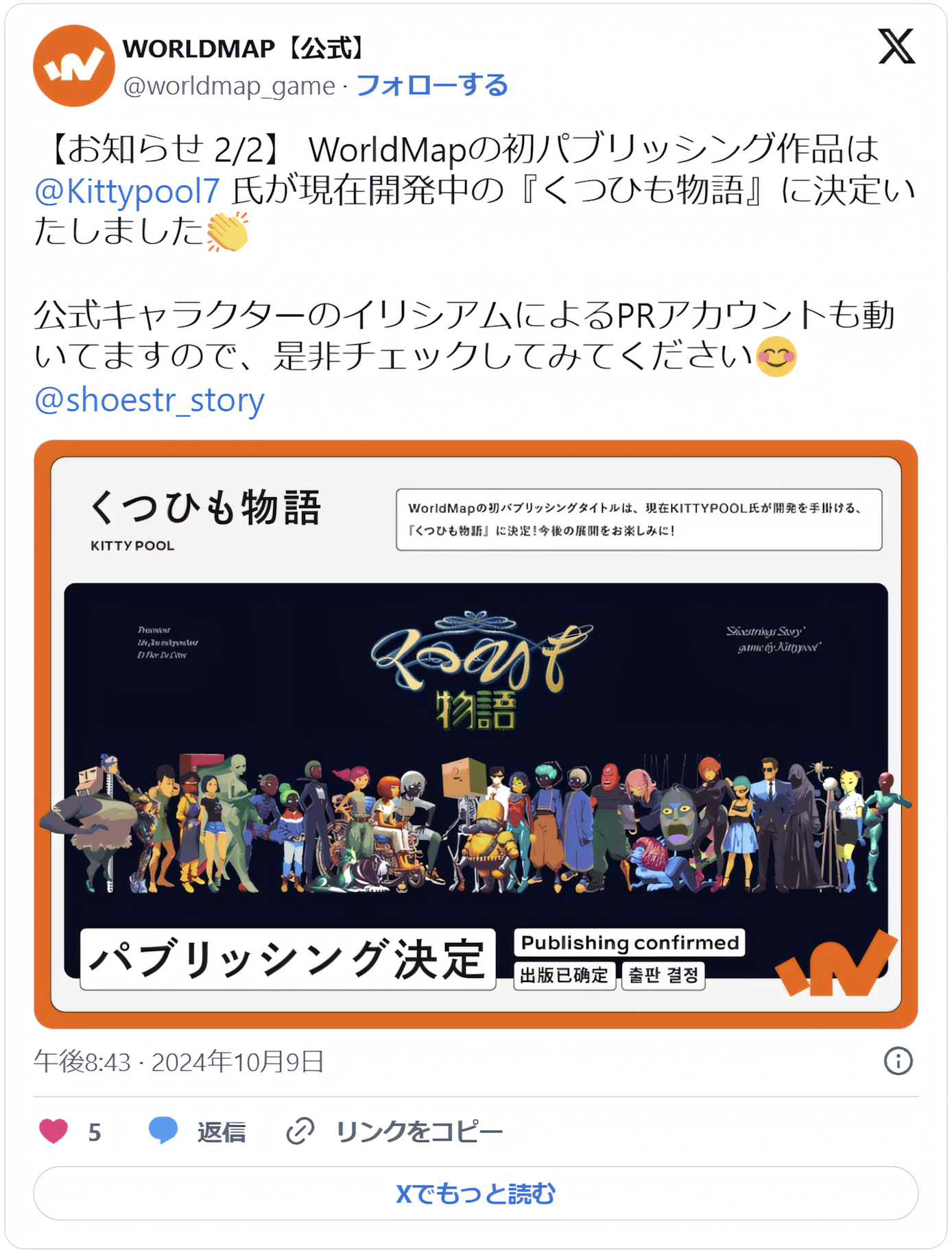 IP展開されるのは、日本の個人ゲーム開発者びぶ氏が手掛ける探索ホラー・アドベンチャーゲーム『さいはて駅』。パブリッシングタイトルとなるのは、同じく日本の個人ゲーム開発者KITTYPOOL氏が手掛けるビジュアルノベルゲーム『くつひも物語』だ。