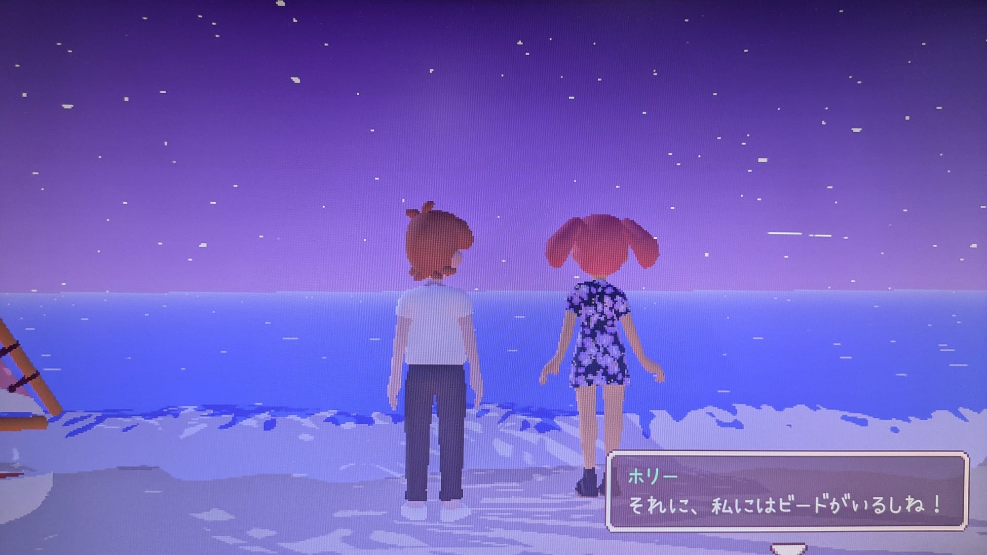 試遊体験版で描かれたのは6年前の時代。ホリーとビードがまだ10代の恋人同士だった頃で、翌日には小さなヨットに乗ってこの海辺の町から出発し、世界を巡る旅に出ようとしている2人の姿が映し出されているところから始まる。