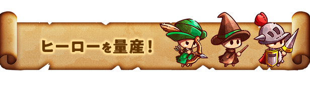 スクロール上に存在する〇△□などの図形をコンベアで運び出し、キャンバスで組み立てることでヒーローを作成します。図形や色の組み合わせにより様々なヒーローを作成することができます。〇と△で人間、〇と□で妖精。作った人間に□を組み合わせれば盾兵になります。ヒーロー同士を合成することで、より上位のヒーローを作成することも・・・?