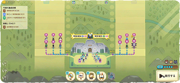 宿屋に向かう道は海ギルドからの道と山ギルドからの道に左右で分かれており、それぞれ10マスの距離がある。冒険者たちは1ターンに2~4マスほど進む。5日間(20ターン)営業するとその週が終わり、次の週に向けて準備やセーブができる。
