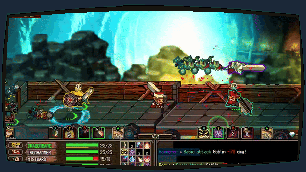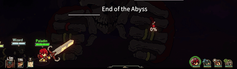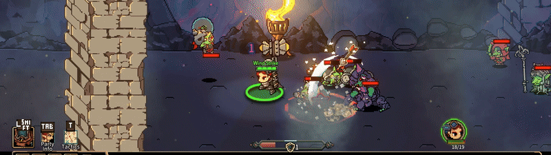 パーティは4人編成。1番目と2番目のキャラクターを切り替えながら戦う1人プレイと、オフライン2人協力プレイのどちらかを選んで遊べる。3番目と4番目のキャラクターは直接操作するのではなく、自動で行動する。