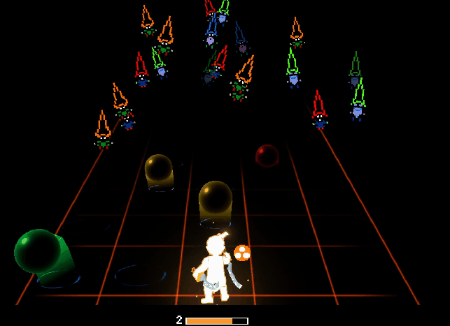 失われた自身の声を取り戻すため、強大なマインドドラゴンを倒すため主人公は旅に出る。古典的なRPGを彷彿とさせる世界を冒険しながら、リズムゲームをベースとした戦いを繰り広げよう。さまざまな音楽と共に流れてくる多彩なノーツを見極めて、軽快な動きを駆使して戦うのだ。