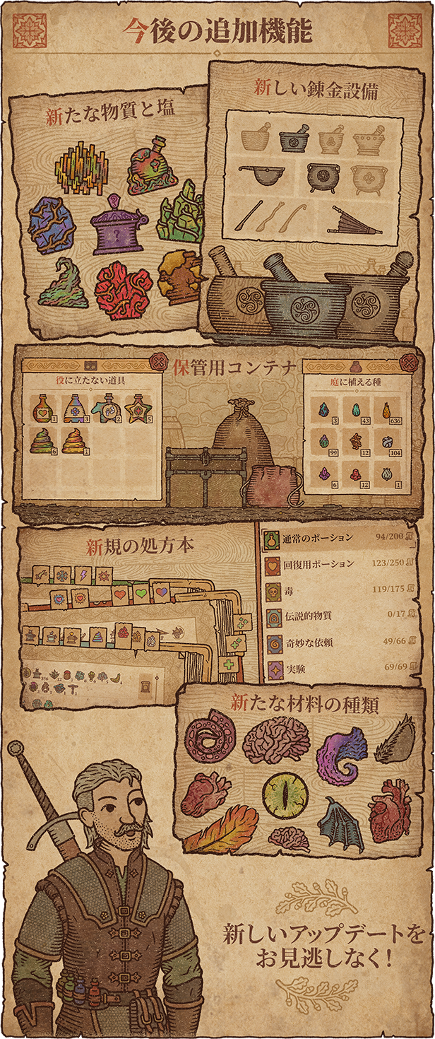 ゲームの主軸として、ポーション調合の工程自体を作りこんでいる『Potion Craft: Alchemist Simulator』のようなタイトルとは、また違ったものだと思ってほしい。
