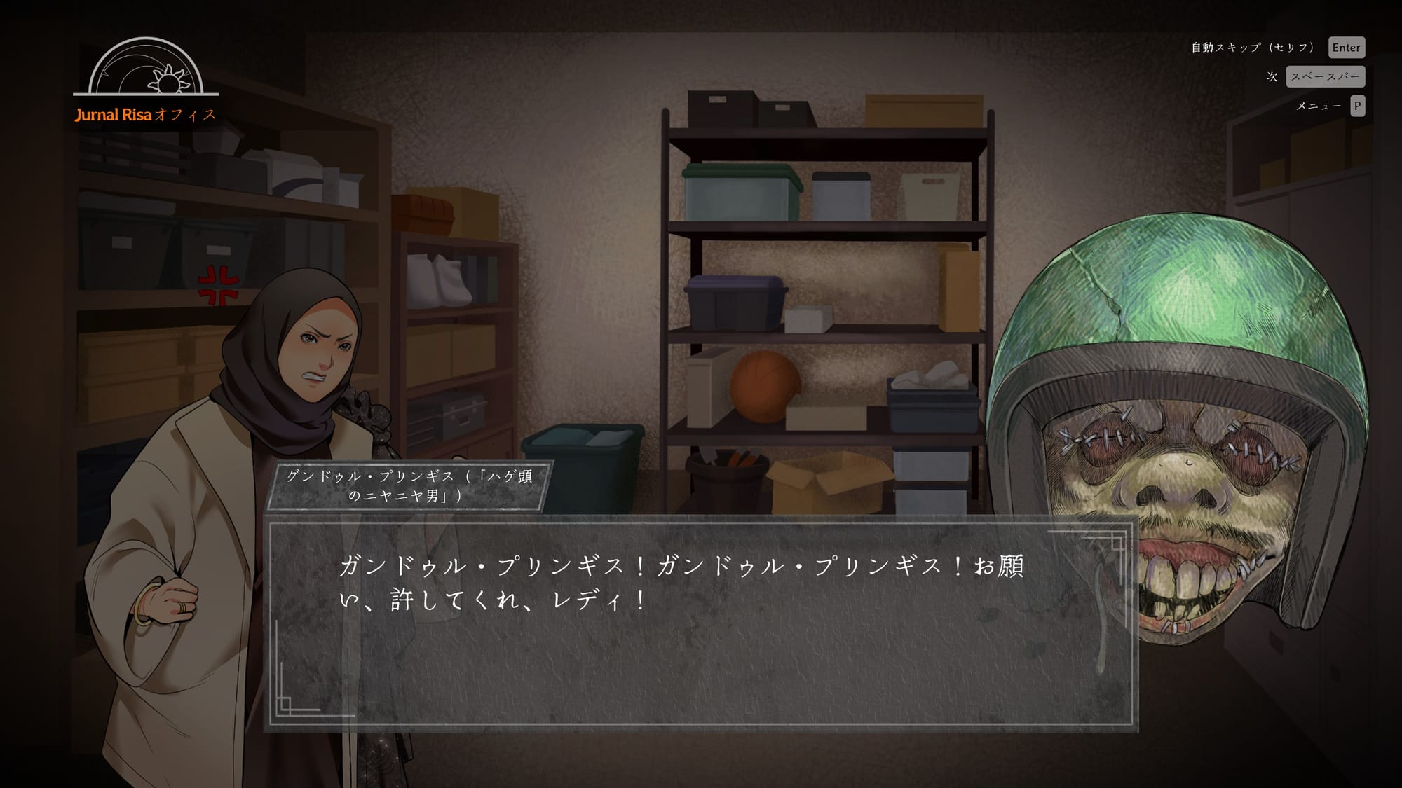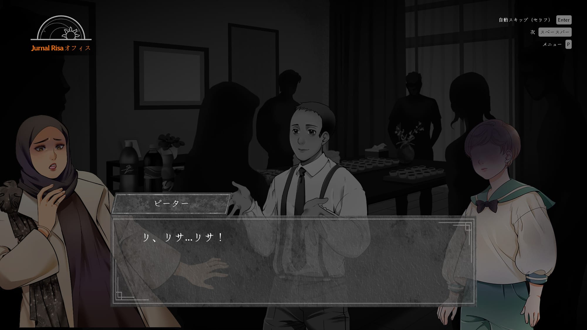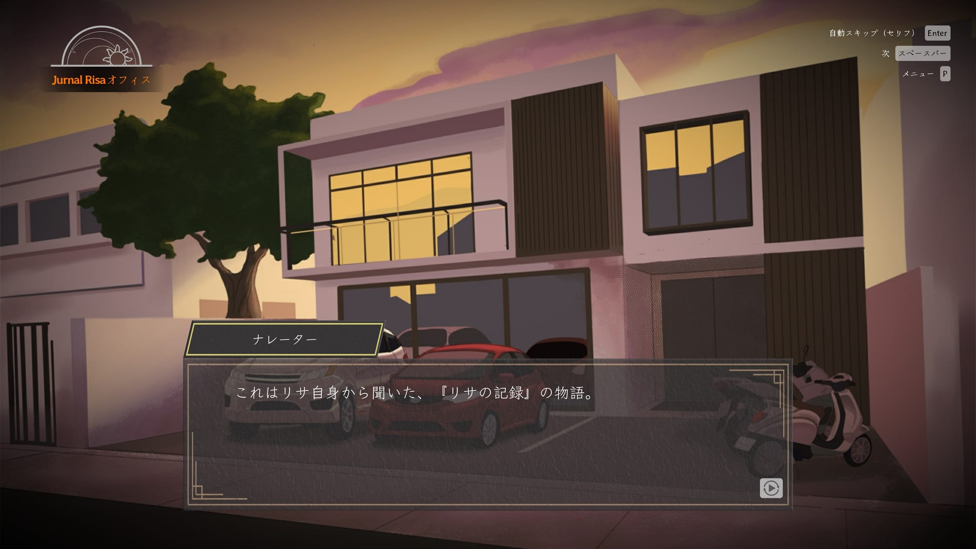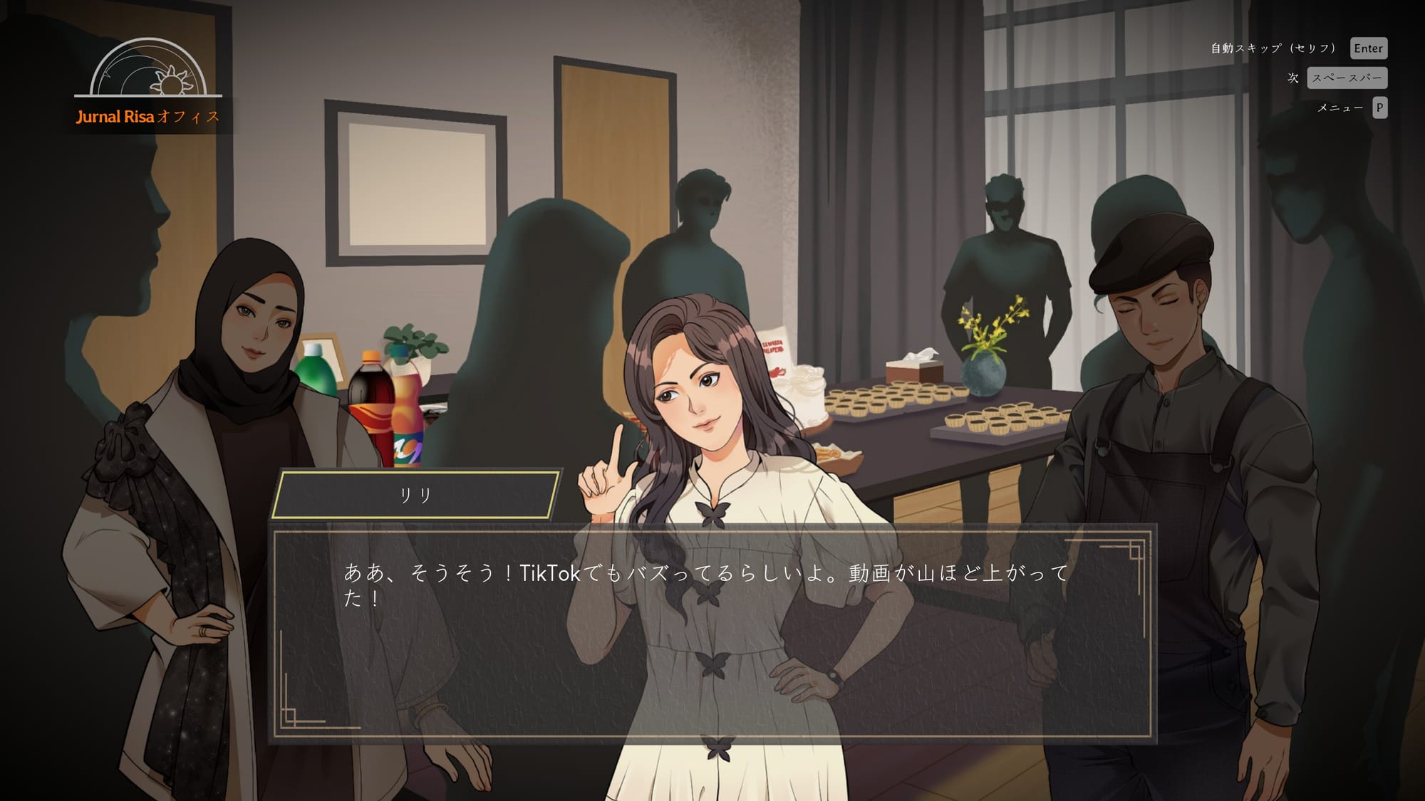 今回の体験版では、物語のプロローグ部分をプレイ可能。語り手を務めるのはRisa氏本人で(作中ではリサ)、実在する「Jurnal Risa」のメンバーも登場する。ファンにとっては、物語の幕開けとともに期待感を大いに高めてくれる構成だ。