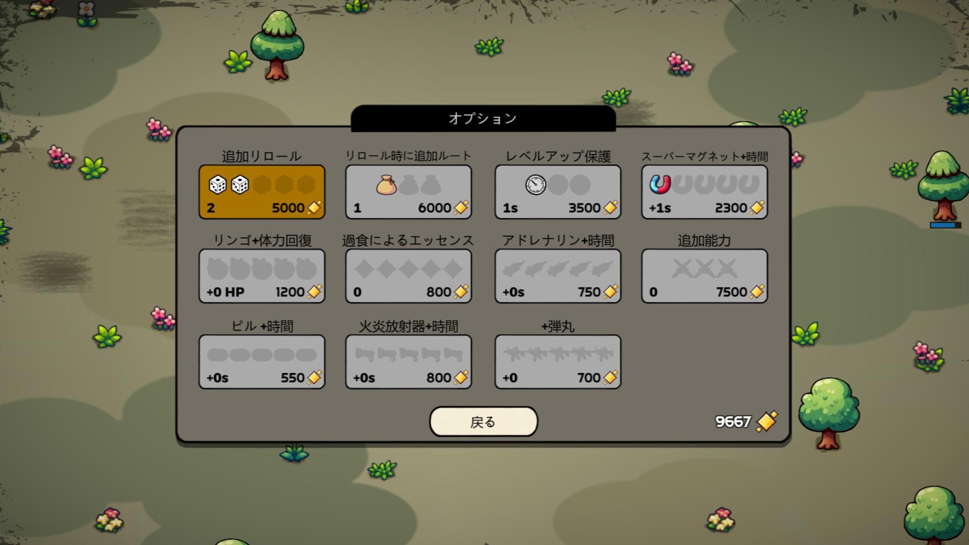 また、プレイを始める前には、残ったエッセンスを使って永続的なアップグレードを解放することも可能だ。プレイを重ねるごとにキャラクターを強化できるため、どの永続的なアップグレードを選ぶかによってその後の立ち回り方が大きく変わっていく。