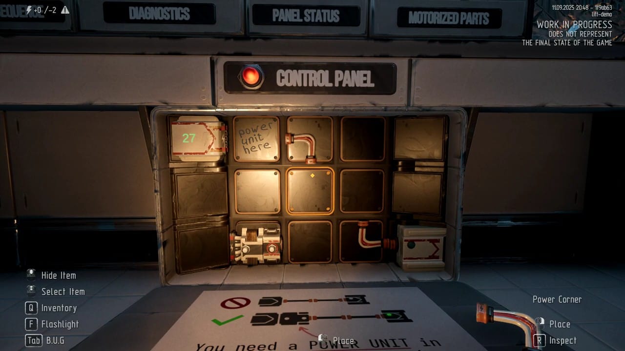 どうなるか予想がついていなくても、線を繋ぎ直して電気を通すことでなにかの機能が復活し、それが自身の助けになる。目に映る景色は不気味であったり奇妙であったりするのだが、一歩一歩のプレイ内容は確かに前向きなもの。それを積み重ねていく楽しさに気が付くと、探索にはしだいに警戒ではなく、期待や好奇心がともなうようになってくる――デモ版ではそんな感触を得られた。さらに、クラフト要素もあるとのことなので、作業内容の幅にも期待できるだろう。