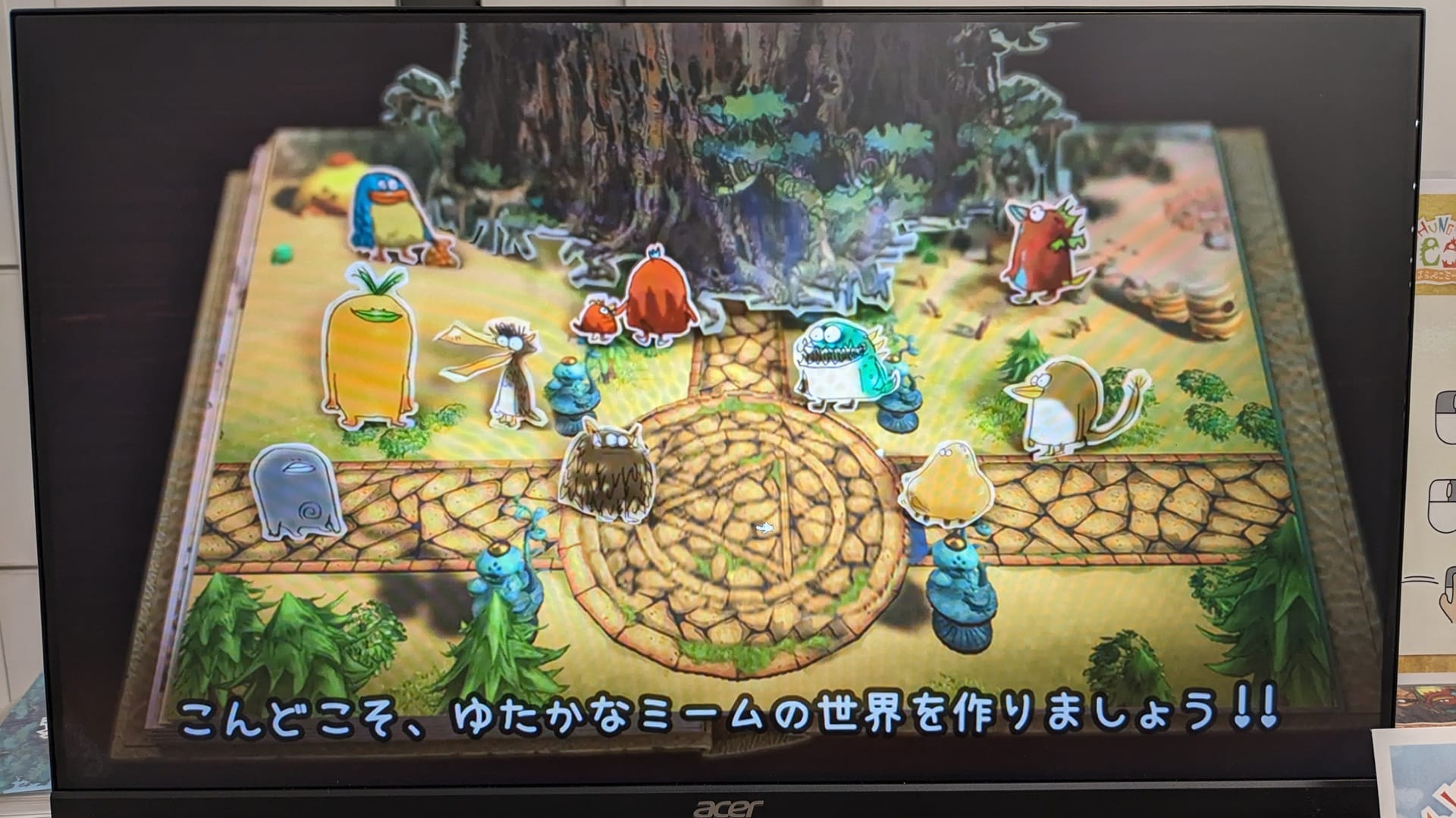 物語の舞台は一冊の絵本。世界樹のふもとに暮らす「ミーム」のお話は、本来ならばとても悲しい結末を迎えてしまう。そこでプレイヤーは絵本の世界に干渉し、ミームを"おてつだい"しながら物語をハッピーエンドへ導いていくことになる。