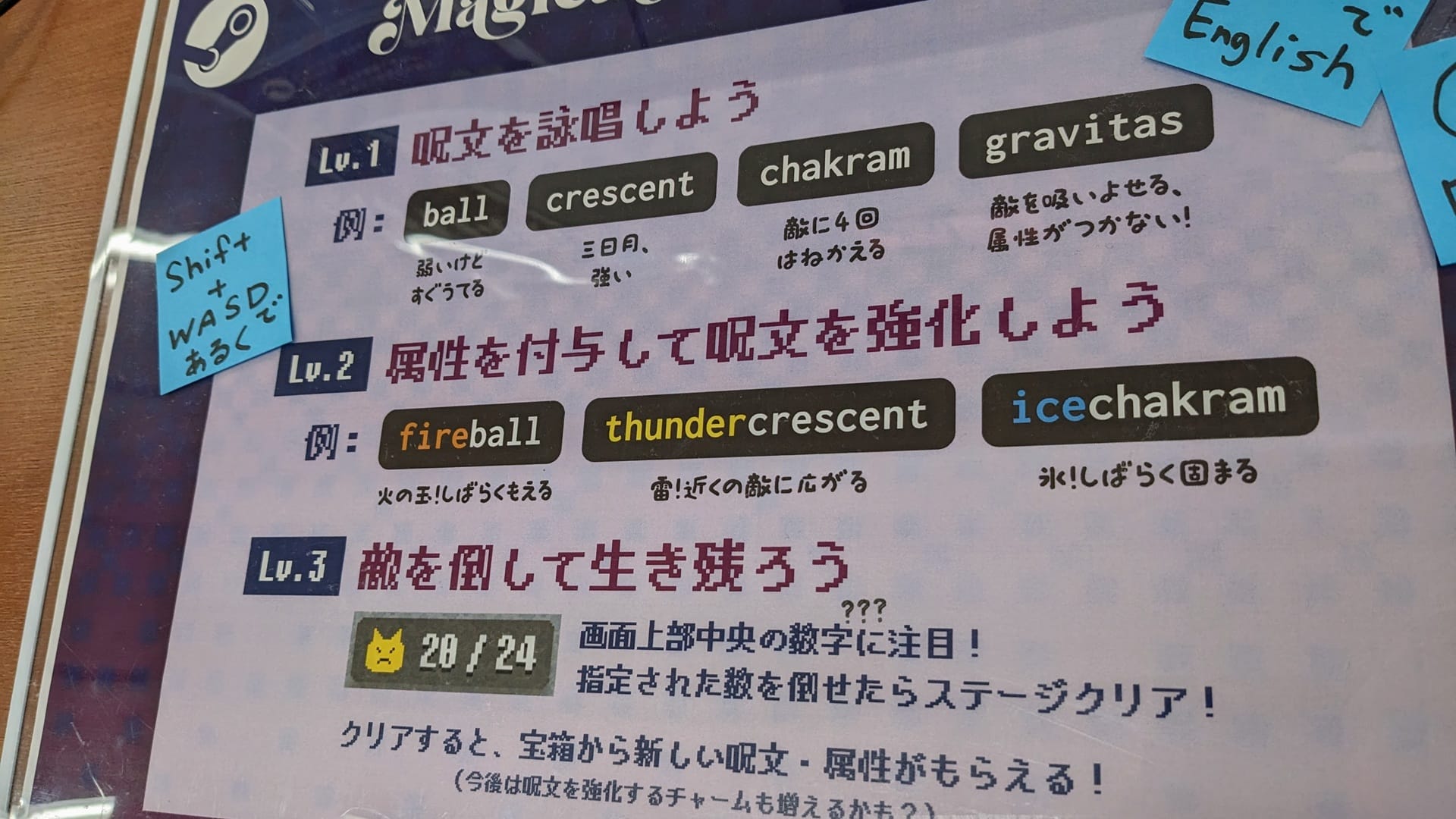 今回の試遊では開発段階のビルドを一部体験できただけだったが、簡単な単語のはずなのに意外と焦らされ、うまくタイピングできない緊張感があった。呪文のバリエーションが増えれば増えるほど強力な魔法を放てるようになるが、そのぶんリスクも大きくなっていくのだろう。
