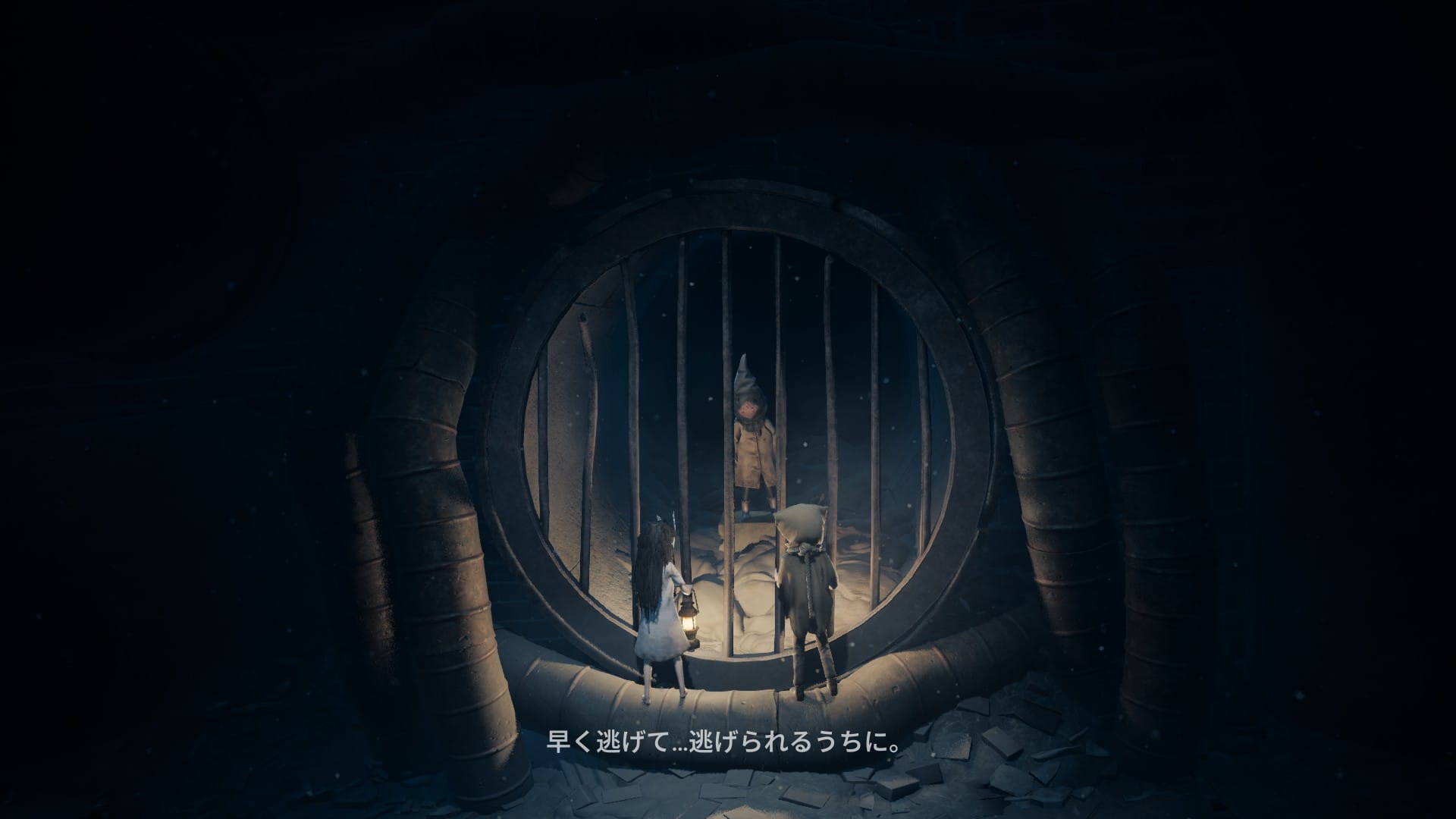 ロケーションは全体的に薄暗く、少年はライターを、少女はランタンを手に持ち、2つの小さな光が足元を照らす。操作は歩く・走る・ジャンプといった基本的なものだが、1人では越えられない障害を2人の連携で突破していく設計になっている。片方が踏み台となり、もう一方を上へ押し上げ、手を取って引き上げる──そうした動作が、ゲーム全体の協力要素として組み込まれている。