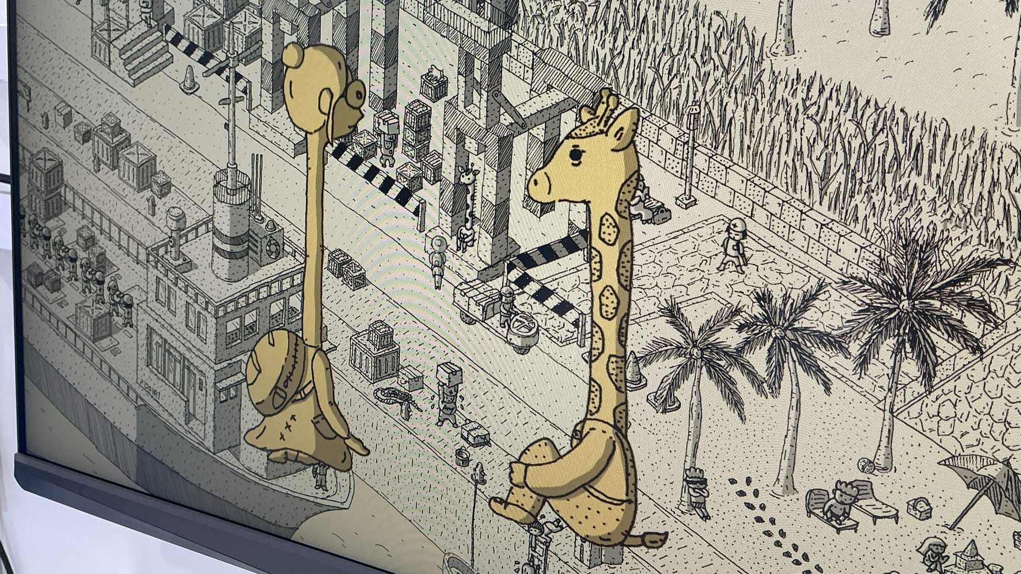 また、愛らしいギミックが随所に盛り込まれている点も非常に魅力的だ。たとえば、キリンとやりとりをしていると、フレンディの首もキリンのようにニョーンと伸びて、思わずにやけてしまった。熊沢氏によると、『クレヨンしんちゃん』のような子どもも大人も楽しめるコメディを目指しているという。手描きならではのぬくもりとクスっと笑えるユーモアが絶妙にマッチしていると感じた。