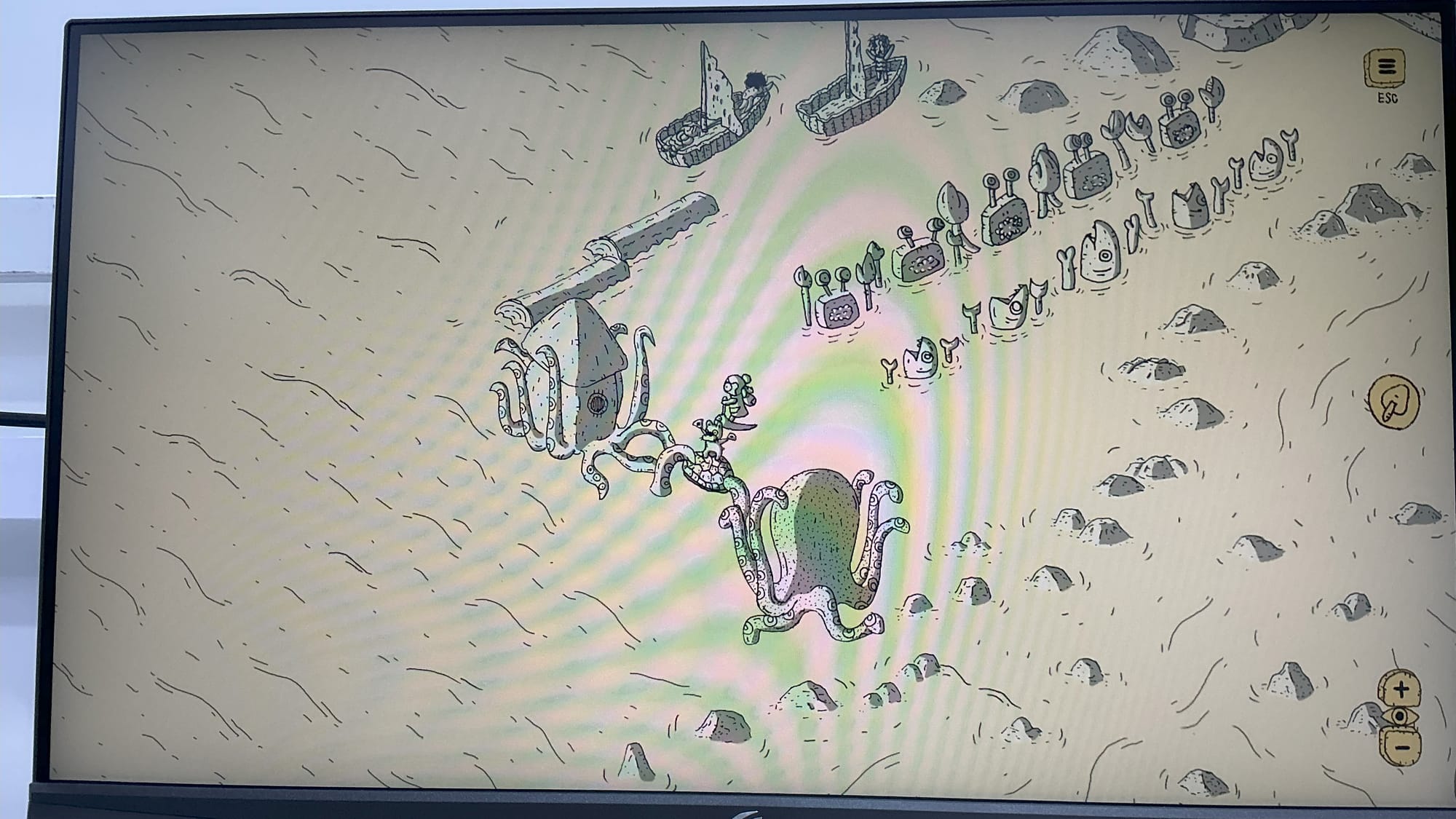 本作の最大の特徴は、こうした手描きのキャラクターたちが動き出す「動く絵本」の世界だ。セリフやUIメッセージなどのテキストは一切存在しないが、キャラクターの表情や仕草だけで何をすべきかが自然と伝わってくる。熊沢氏の絵の表現力があってこそのノンバーバルなゲームと言えるだろう。