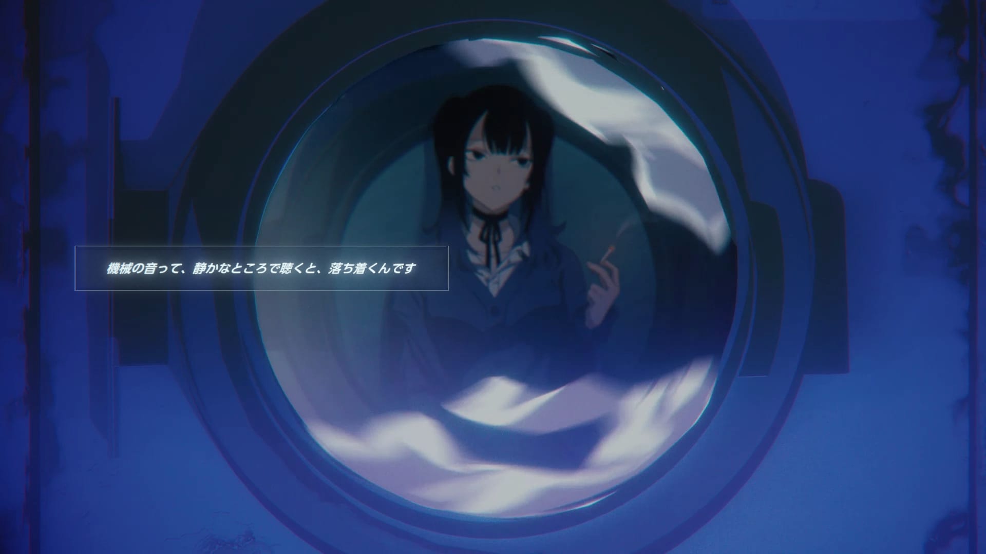 青みがかった蒼く静謐なアートワークと、Lo-FiなBGMが物語を彩り、プレイ中は雑念を捨ててシナリオへと没頭させてくれる。ブース内のリラックスできる雰囲気とソファの快適さもあり、ここがイベントホールであることを忘れてしまうくらいだった。