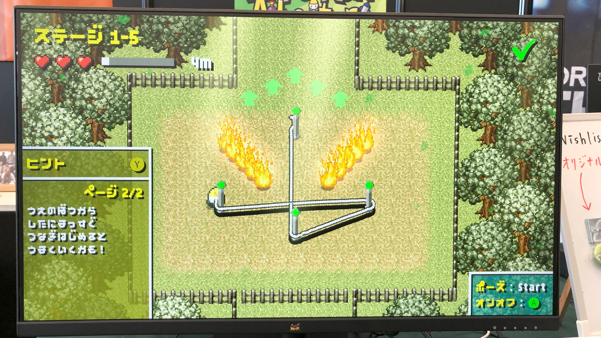 また、攻略方法が分からなくなった時には「ヒント」という項目も用意されており、ゲームが苦手な方でも安心できるシステムとなっている。最終的にステージのボスを倒すことで、試遊は終了となったが、クリアしたステージを他の方法でも攻略できるのではないかと試してみたくなり、「もっと続きをプレイしたい」と感じる作品だった。