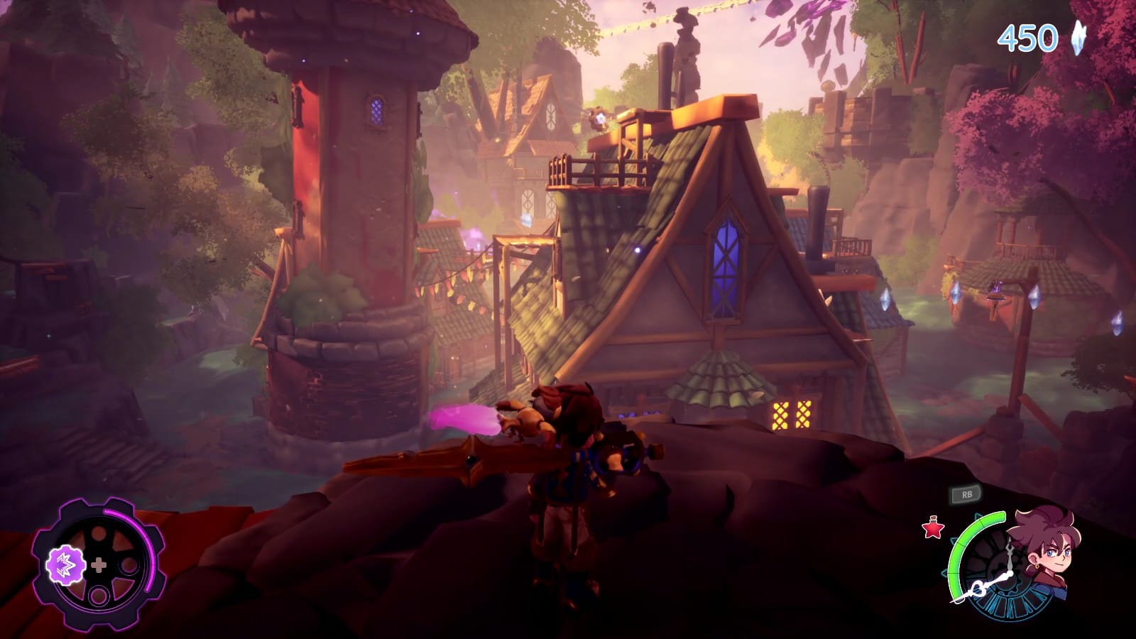 ジリアンの動きが機敏すぎず、落ち着いて操作できるものとなっているのも好感触だ。フックや空中でのローリングなどは飛距離の長さと相まってスピード感があり、爽快感もきっちり味わえる。二段ジャンプの際にジリアンがくるりと横回転したりなど、モーションが豊富で目にも楽しい。