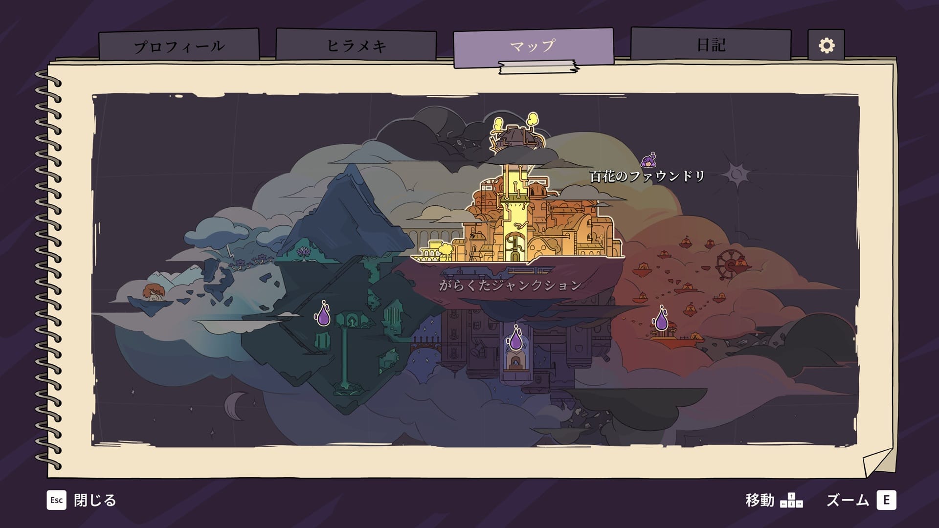 がらくたジャンクションには、外の世界へとつながる列車が置かれているものの、今は何者かによってロープで縛られて動かせない状態にある。街で出会う市長によれば、そのロープを断ち切るにはメンターと呼ばれる存在が持つキーアイテム「涙」が必要なのだという。ここで大きな目的が提示され、プレイヤーは最初のエリアである百花のファウンドリへ向かうことになる。