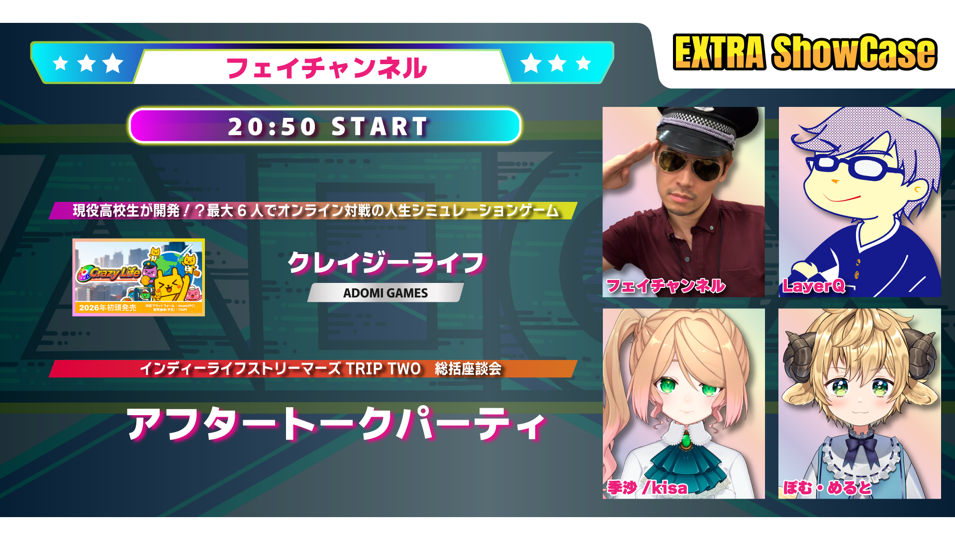 インディーライフストリーマーズは、ストリーマーがリレー形式でインディーゲームを実況紹介するライブ番組型のショーケースイベント。各ストリーマーが順番に作品をプレイし、それぞれの視点からゲームの魅力を伝えることを目的としている。