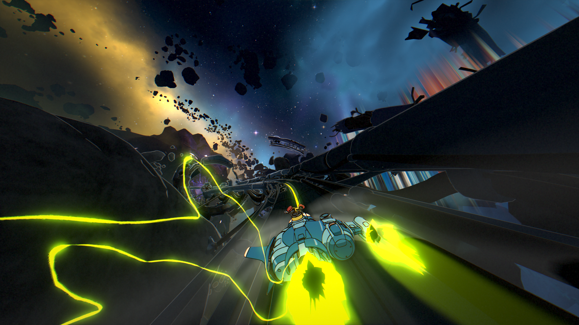 独自のツールを使って道を切り開いたり、危険な小惑星帯を宇宙船で飛び抜けたり、時には一息ついてアニメにインスパイアされた雰囲気に浸ったりしながら、宇宙を駆け抜ける冒険を通じてフレンドと新たな絆を築いていこう。