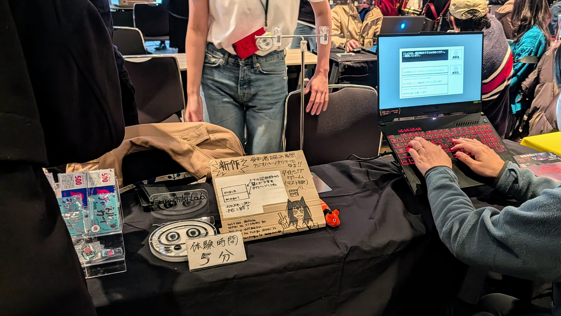 今回ブースでフロシキラボ代表の田平孝太郎氏にお話を伺えたが、本作は映画『ミュート・ウィットネス』にインスピレーションを受けたとのことだ。この映画は、撮影現場で恐ろしい事件を目撃してしまった失声症の女性が、声を出せないまま殺人鬼から逃げ惑う恐怖を描いたサスペンスホラーだ。