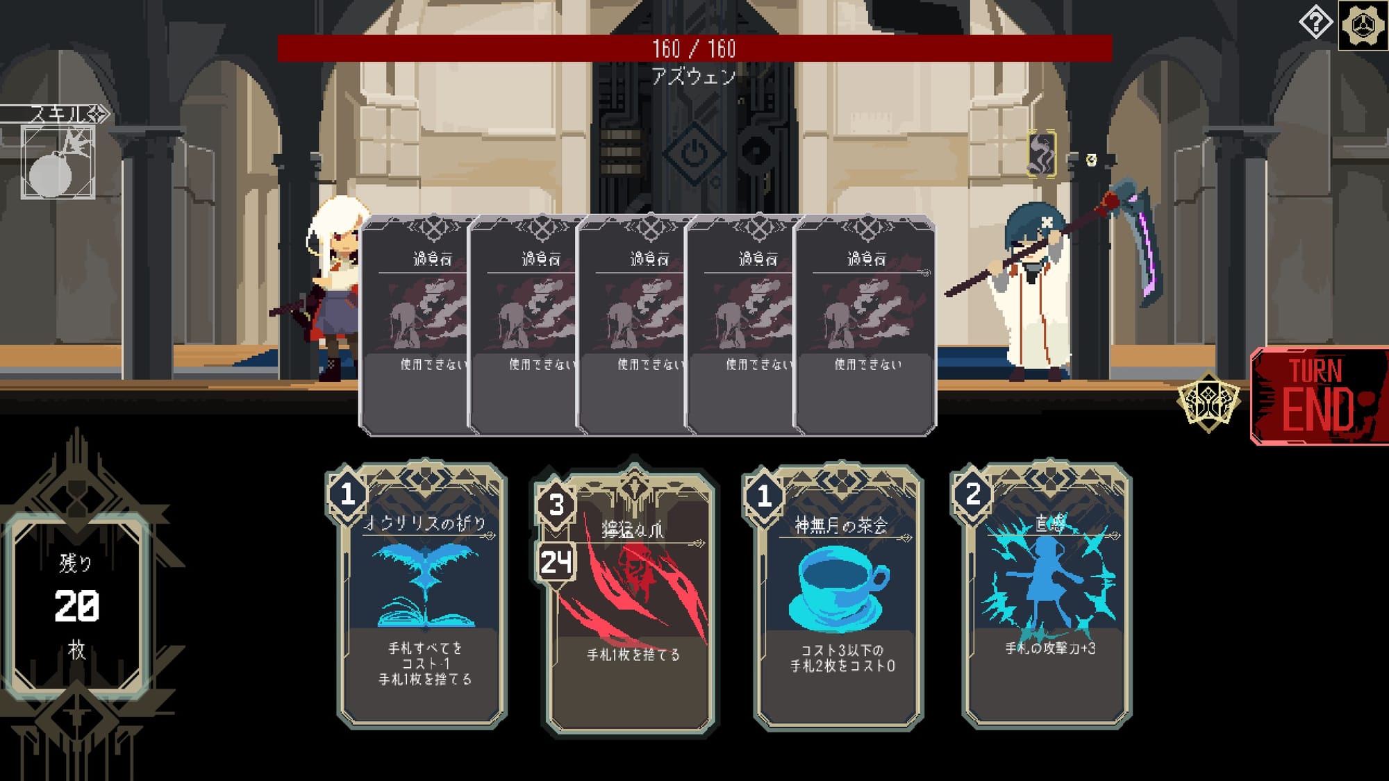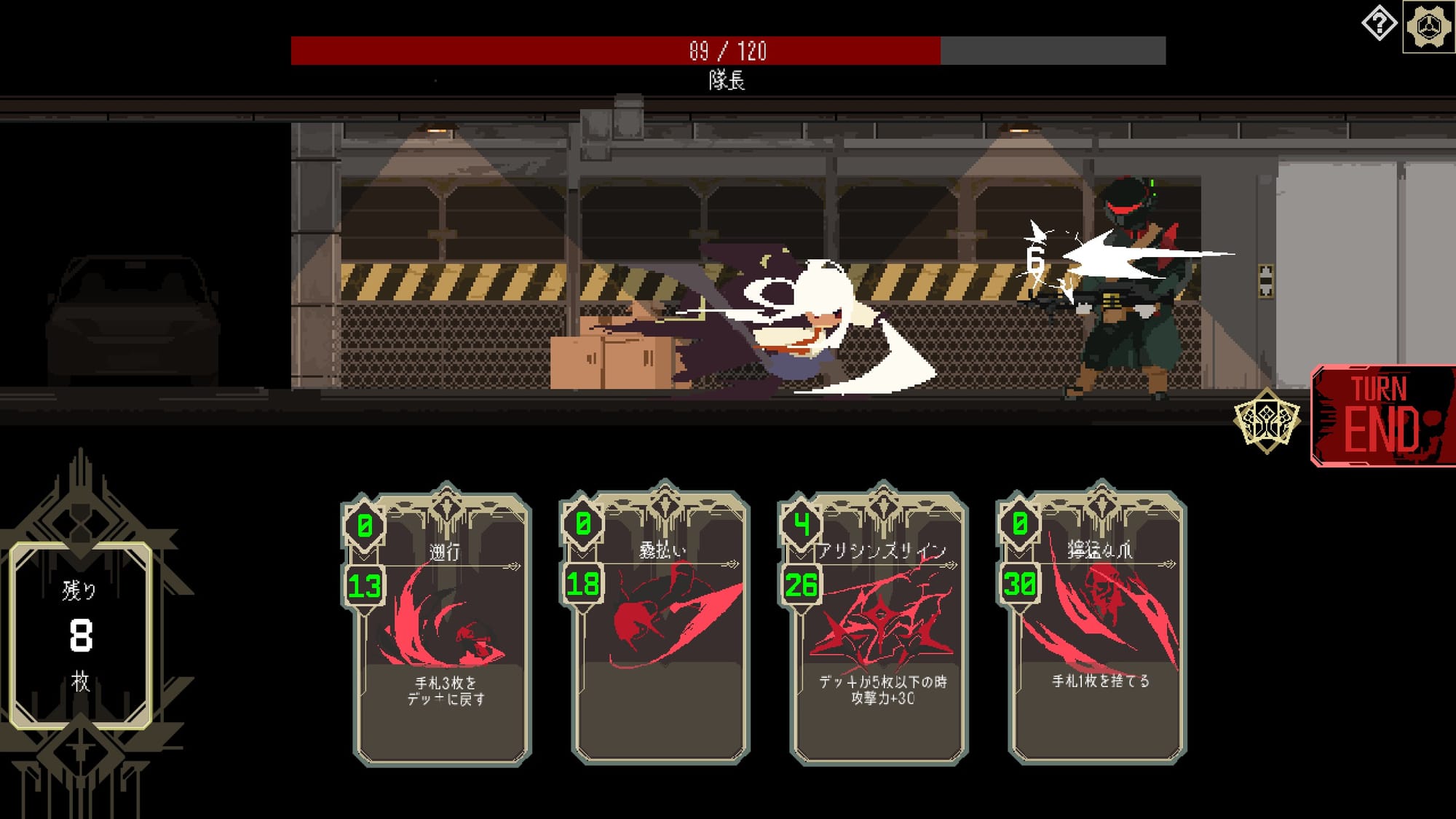一般にワンターンキルと言うと一方的な状況を連想するが、本作においては「成功させなければ死」という追い詰められた状況でもある。もちろん主人公は相手に何もさせず勝利するため圧倒的な強さを見せてくれるが、プレイヤーは一手ごとにコスト計算や引きの運などが絡んでくるので、かなりヒリついたプレイ体験を味わうことができる。