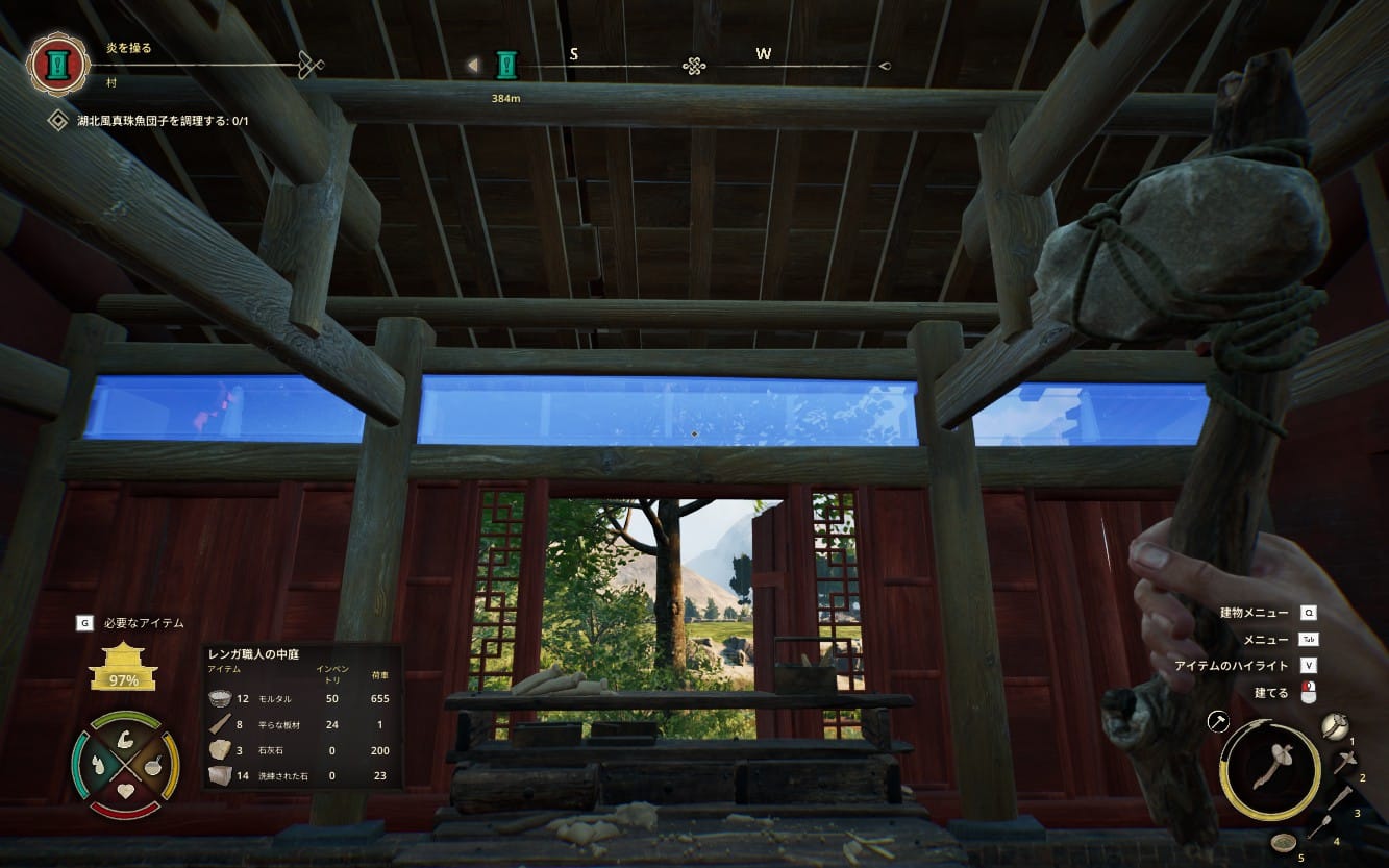 なかでも筆者が喜ばしかった内容は、村での建築時に建物が傾斜にスナップするようになったことである。本作では村の整地などがおこなえず、工房を建築する際は建てられるスペースを探すのに難儀する場面があった。今回のアップデートによりその判定が緩くなり、同時に足場の設置も楽になった印象がある。また、大量の資材を用意する都合上クラフト時間が長くなりがちだった部分も見直され、プレイヤーの待機時間が大きくカットされた。こちらも嬉しい改善だ。