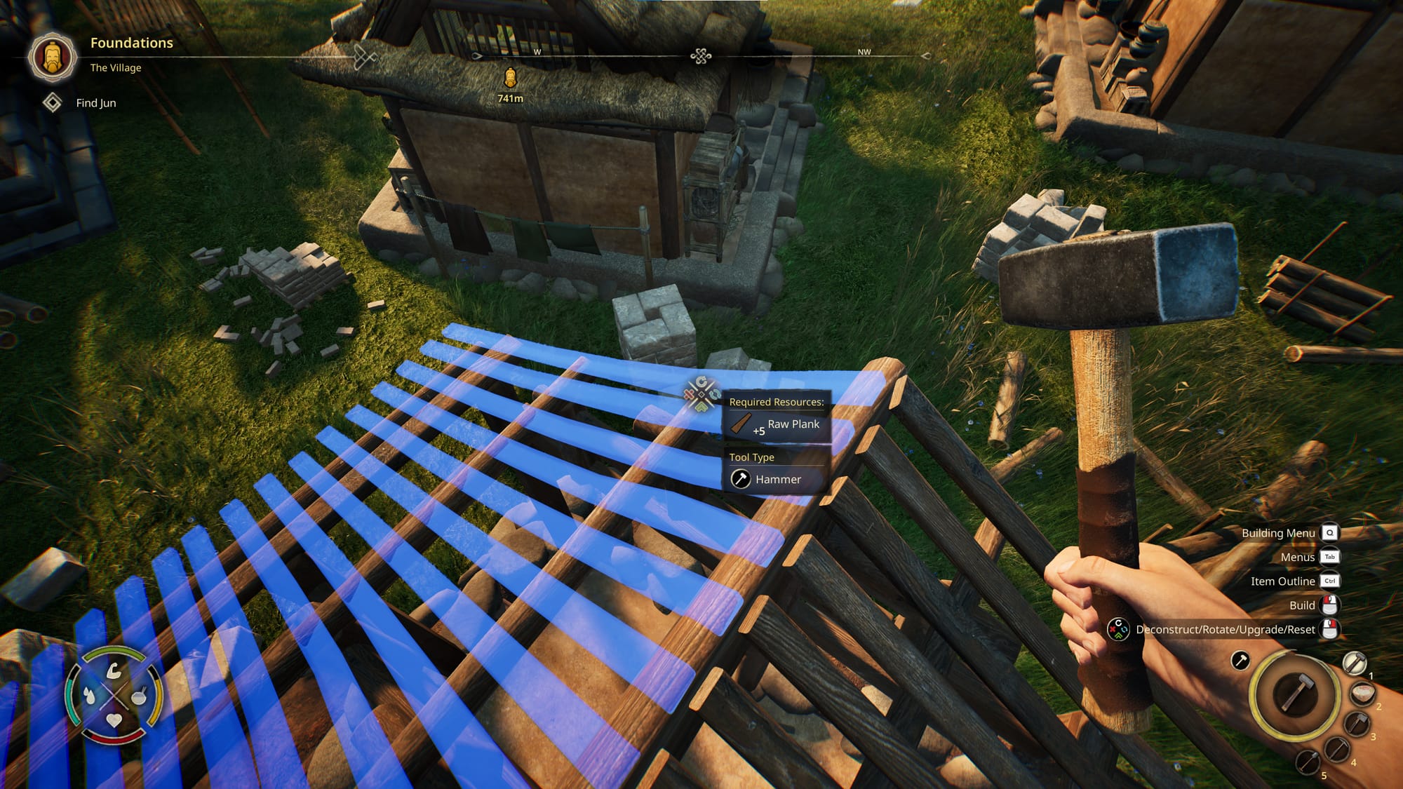 実際の建築学に基づいて土台や骨組みからひとつずつ積み上げていく、リアルな作業内容も特徴的。ほかにも、大量の資材を手軽に運搬できる移動型ストレージ「荷馬車」や、村人に作業を割り振って資源調達を任せられる「村」システムなど、さまざまなアイデアが詰まっている。多様な手段をうまく活用して、建築作業に没頭することが可能だ。