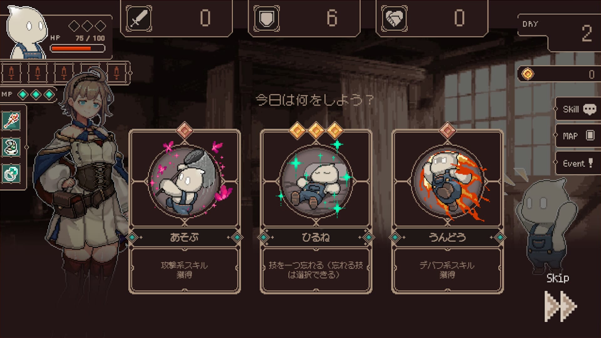 本作は、落ちこぼれの魔女「ソラリス」が、錬金術で生み出された小さな相棒「ホム」と共に100日後の試験合格を目指す育成ローグライトRPGだ。最大の魅力は、デザイナーが一人で描き上げた緻密なフルアニメーションの手描きドット絵にある。UIからキャラクターまで一貫した温かみのある世界観が、物語への没入感を高めてくれる。