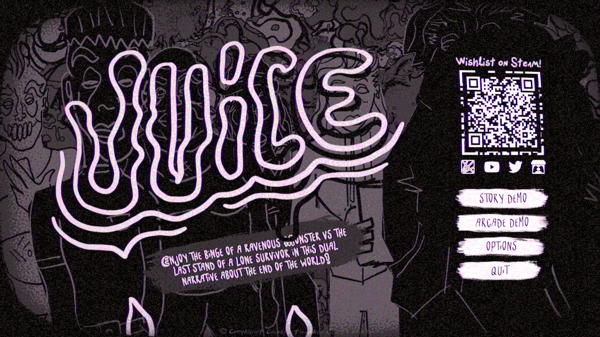 試遊版には、STORY DEMOとARCADE DEMOの2つのプレイモードが用意されていたので、早速STORY DEMOからプレイした。舞台は終末の世界で、高台にある研究施設のような場所から逃げ出したらしい怪物の視点で物語が始まる。映像は漫画のコマ割りのようなスタイルで流れていた。