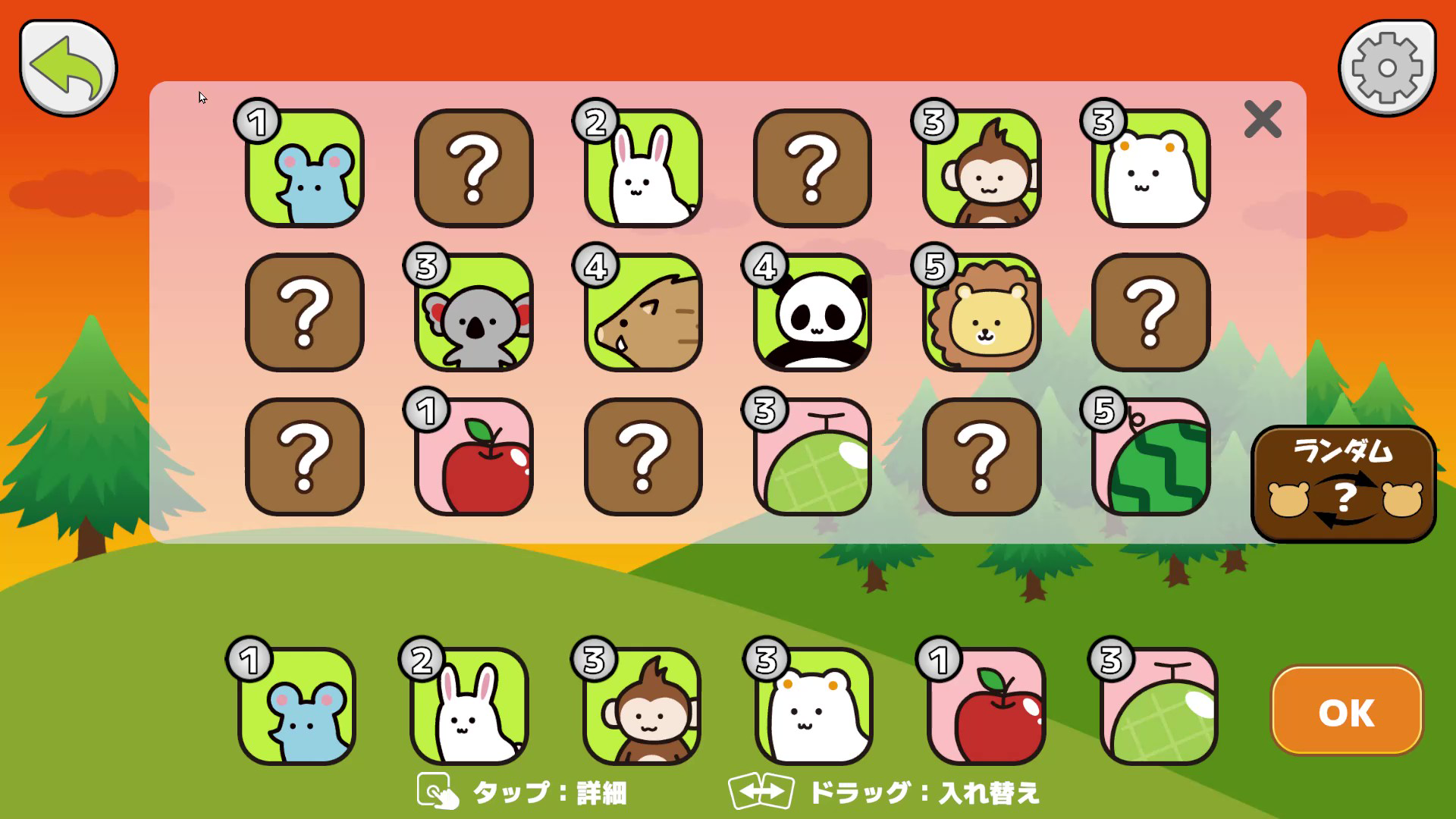 動物たちと並んで重要なのが、強力な使い切り効果を持つ「果物カード」の存在だ。リンゴによるピンポイント攻撃や、メロンによる地上一掃。さらには、動物園もろとも吹き飛ばすスイカといった、ド派手なアクションが用意されている。