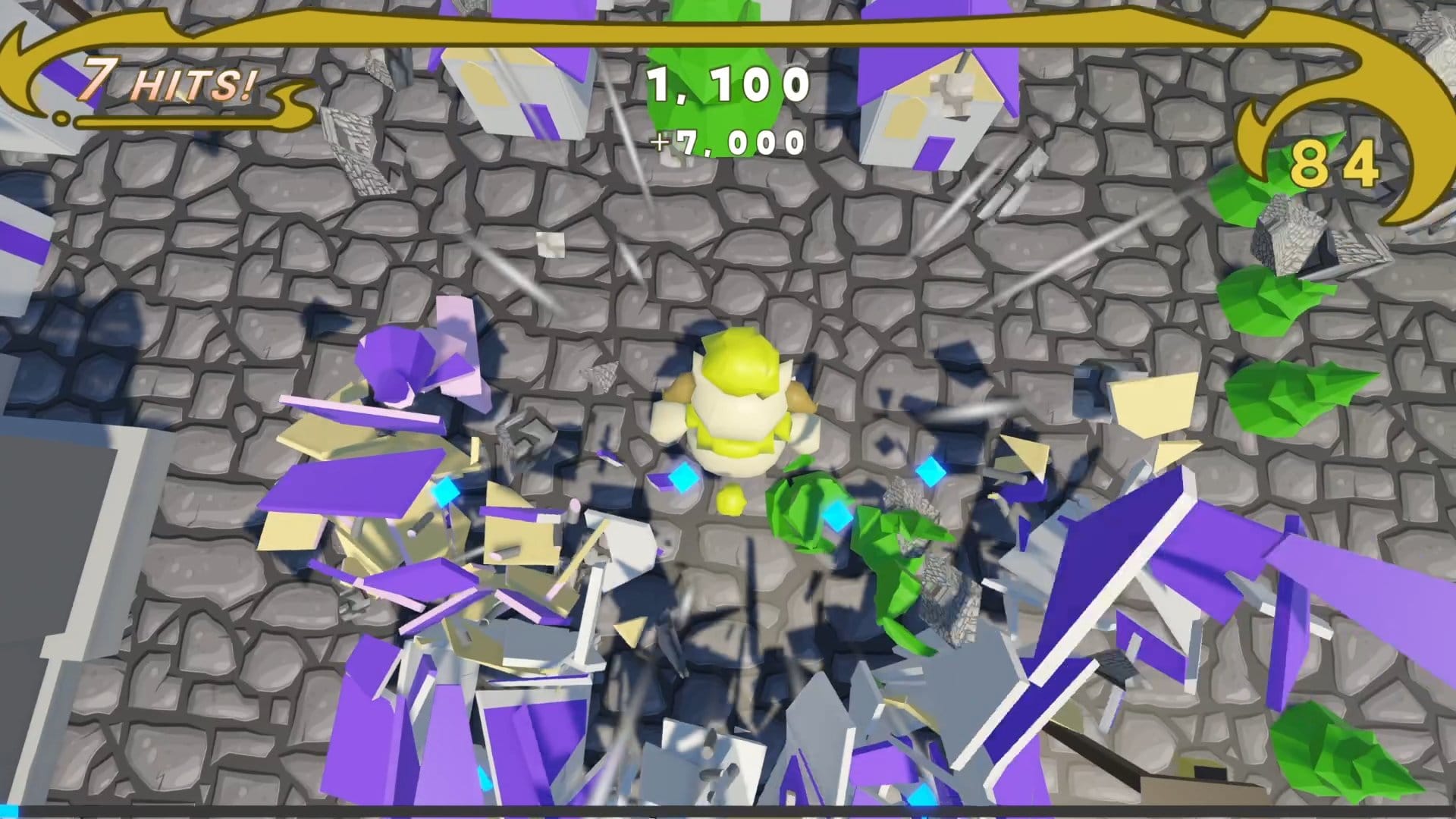 また、建物を破壊して出現する宝石を一定量集めると、凄まじい高さまでジャンプできるフィーバーモードに突入するのだが、それをどのように運用するかもハイスコアを伸ばす上で重要だ。