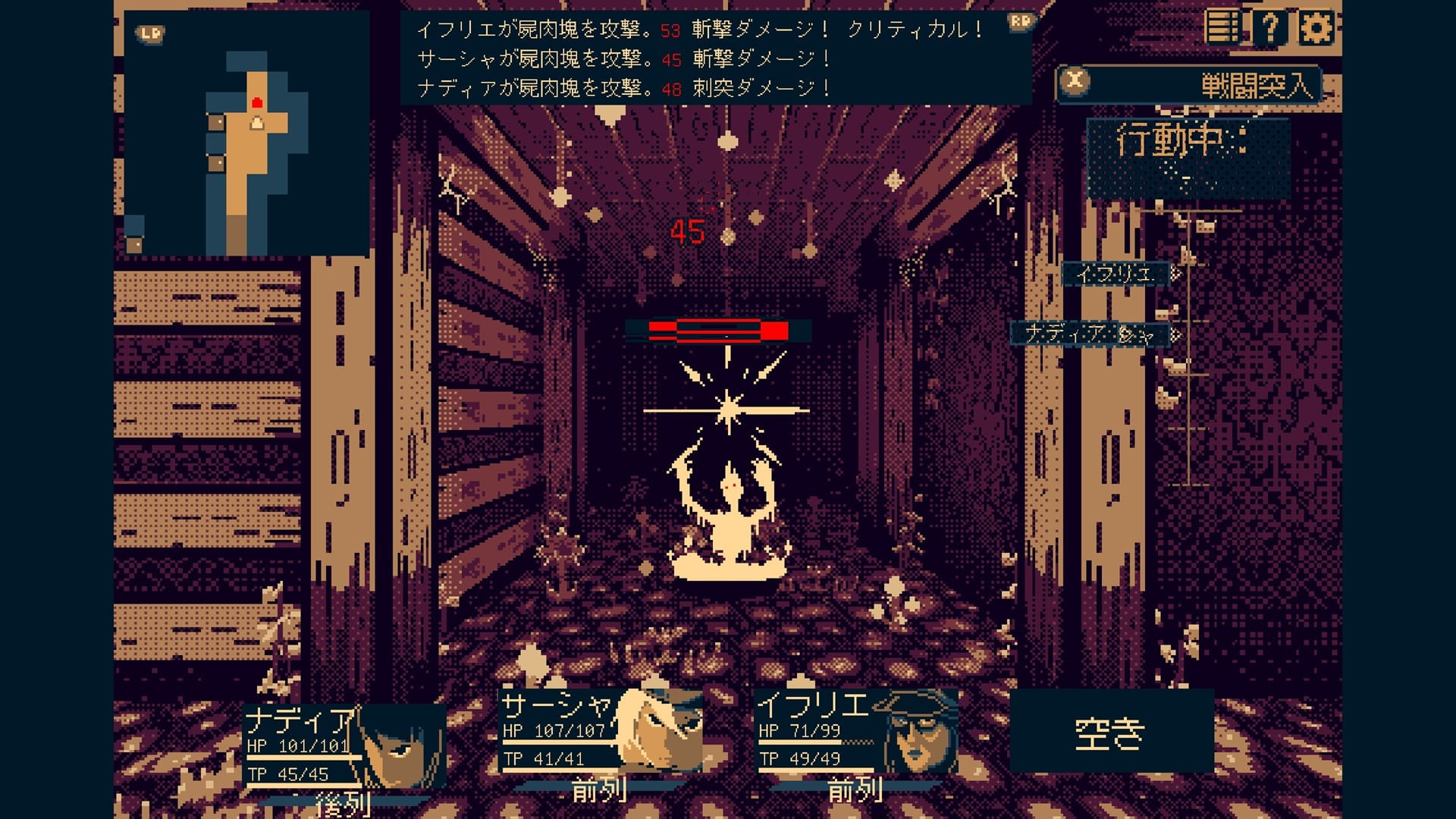 原則として敵は1体ずつなので、パーティが揃えば有利に立ち回れるが、運悪く挟み撃ちされれば一気に窮地に陥ることも。いつ出会うかわからないランダムエンカウントよりも、実はこちらのほうがシビアなのかもしれない。限られたHPとスキルを扱うためのTPを管理し、次なる下層へ踏み込むタイミングを見極める。こうした判断の積み重ねが、そのまま生存率へ反映される仕組みだ。