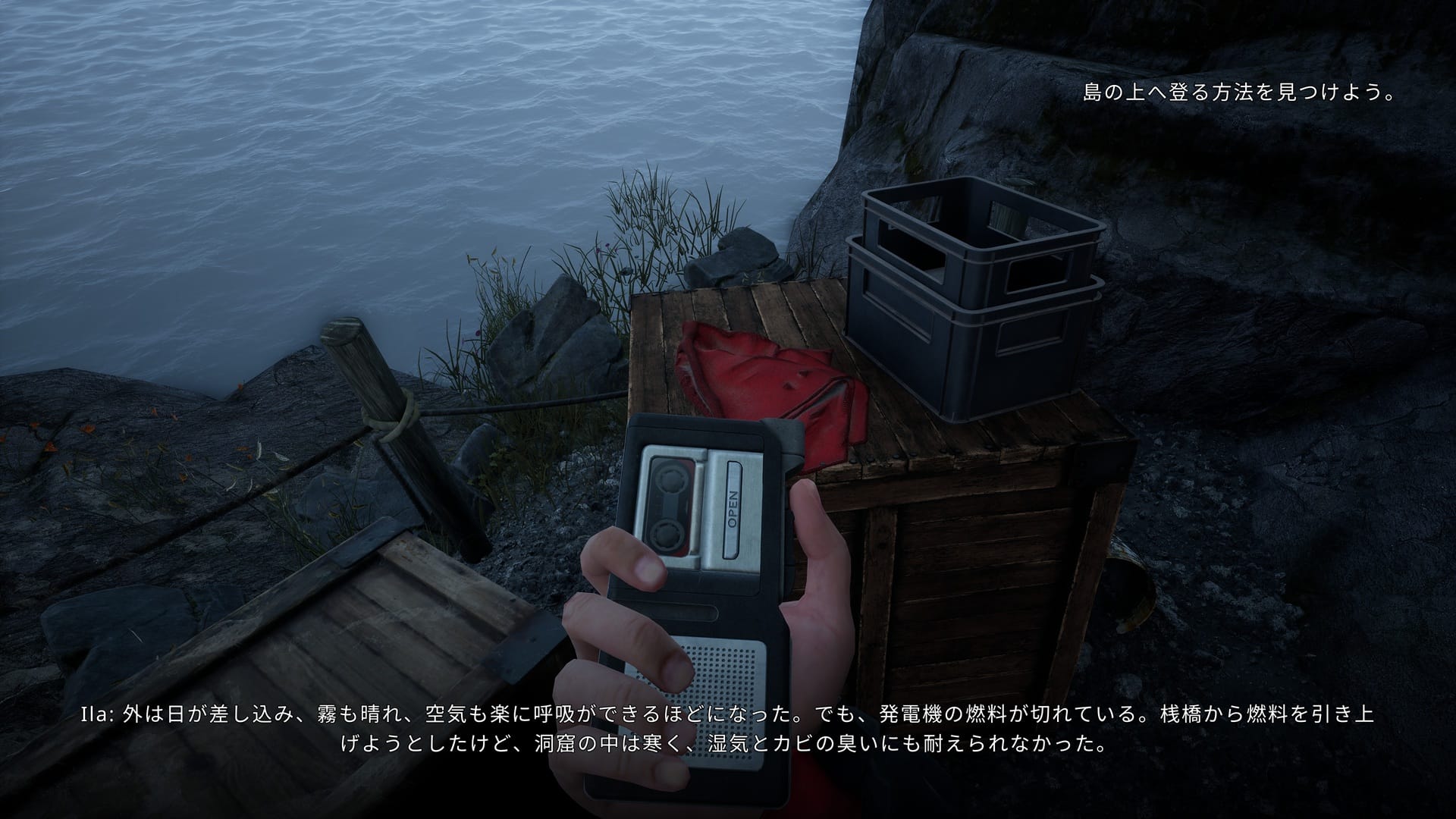 海を進み、いまや放棄されて無人となった灯台のある島に上陸すると、重機を操って先に進むための踏み台を移動させたり、発電機を動かすための燃料を探したりといった探索とパズルがウィルを待ち受けている。そして、そこでの探索の過程で、この島に赴任していた亡き妻イーラの遺品――手紙やカセットテープが見つかる。