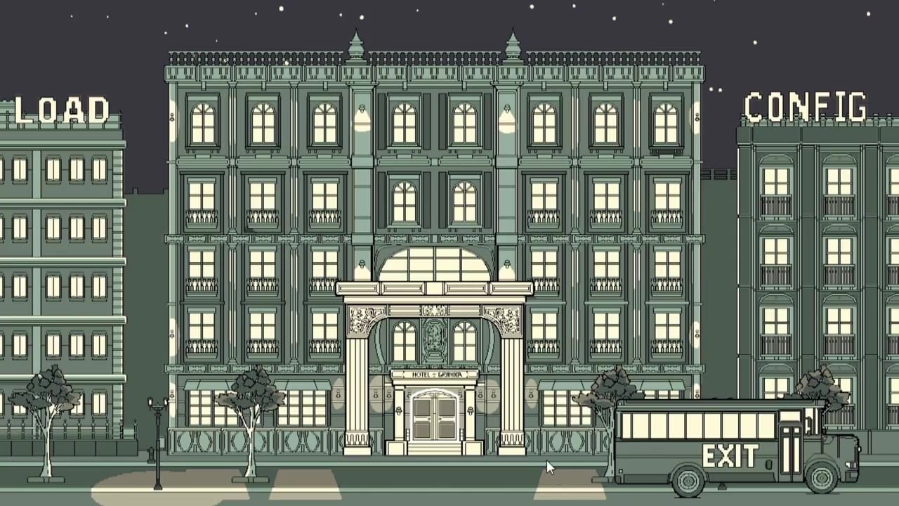 まず目を惹いたのは、タイトル画面。グレーと黄色を基調としたレトロな色合いのドット絵が抜群の雰囲気を醸し出しており、プレイヤー自身も自然とホテルへ誘われるようだ。