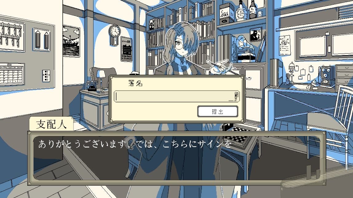 そんな主人公を出迎えてくれたのは、眼鏡をかけた知的な印象の支配人だ。支配人からの面接という形でプレイヤーネームを入力し、いよいよゲーム本編へと入っていく。