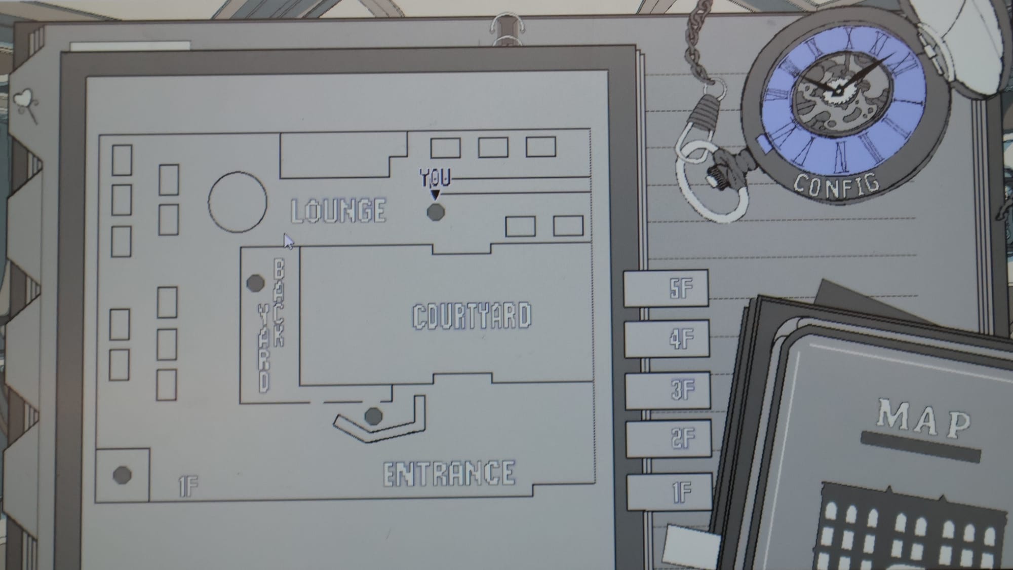 本作のマップ移動は、手帳を開き、中に記されているフロアガイドから行きたいところを指定するという形で行うことができる。また、落とし物の手掛かりや、人物情報なども手帳内に逐次メモとして追加されていくので、手帳は欠かせない存在となるだろう。